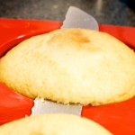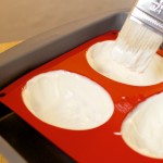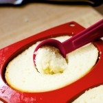To make this dessert, use a silicone mold (this one is egg-shaped) to bake your favorite white or yellow cake. (The cakes are done when a toothpick comes out clean.) After cooling, level the cakes with a serrated knife.
