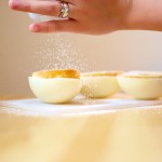 Dust the dessert eggs with confectioners sugar, using a small, fine-mesh sieve.